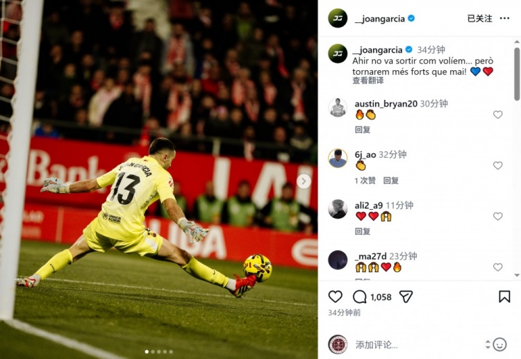 巴萨守门员霍安·加西亚此役做出7次抢救 ,但仍难挽败局,赛后他在社交媒体上写道:“昨天赛事 的结果并非如我们所愿……但我们会比以往任何时候都更强势地归来!”